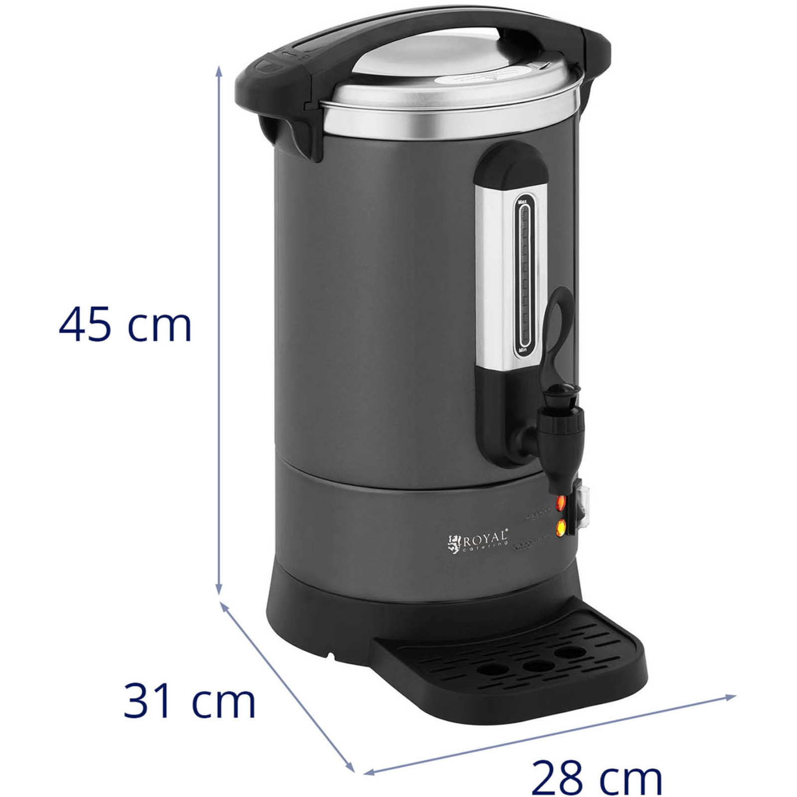 Zaparzacz marki Royal Catering to idealne rozwiązanie do parzenia i utrzymywania w cieple ulubionych napojów. Dzięki dużej pojemności 6 litrów, z łatwością przygotujesz około 43 filiżanek kawy lub herbaty. Urządzenie wykonane ze stali nierdzewnej zapewnia trwałość i estetyczny wygląd.