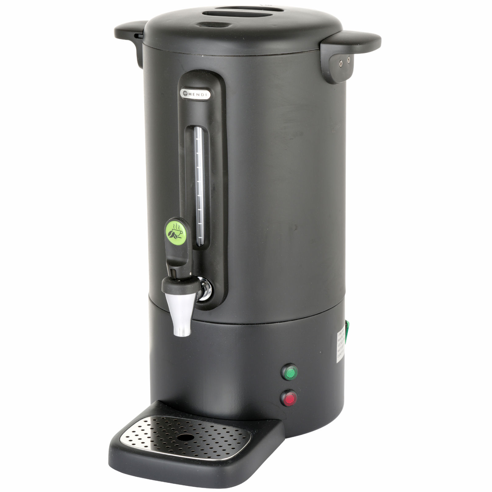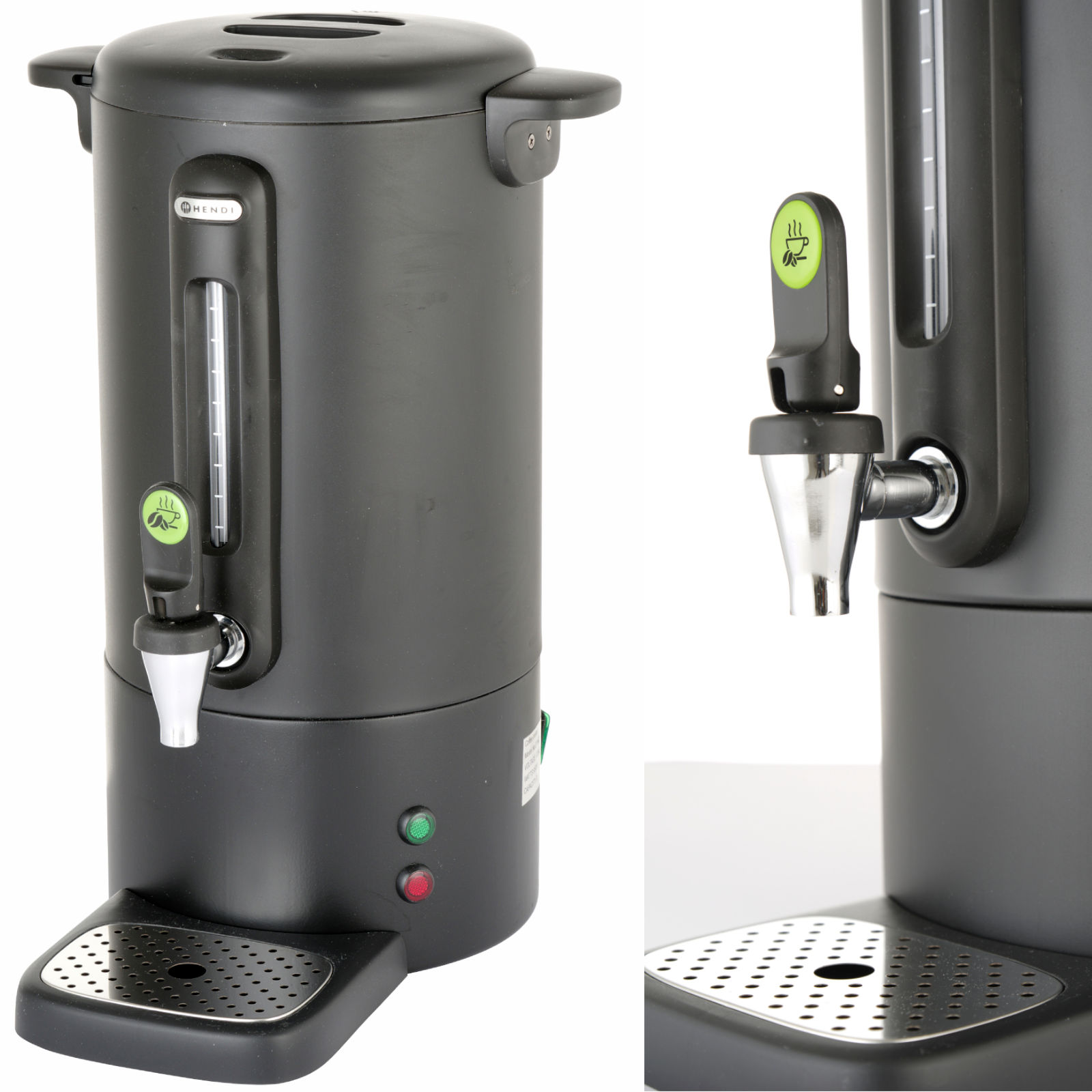 Urządzenie umożliwia parzenie kawy w dużych ilościach, oferując pojemność 7 litrów. Dzięki innowacyjnym rozwiązaniom, takim jak niekapiący kran i szklany wskaźnik poziomu wody, korzystanie z zaparzacza jest niezwykle komfortowe.