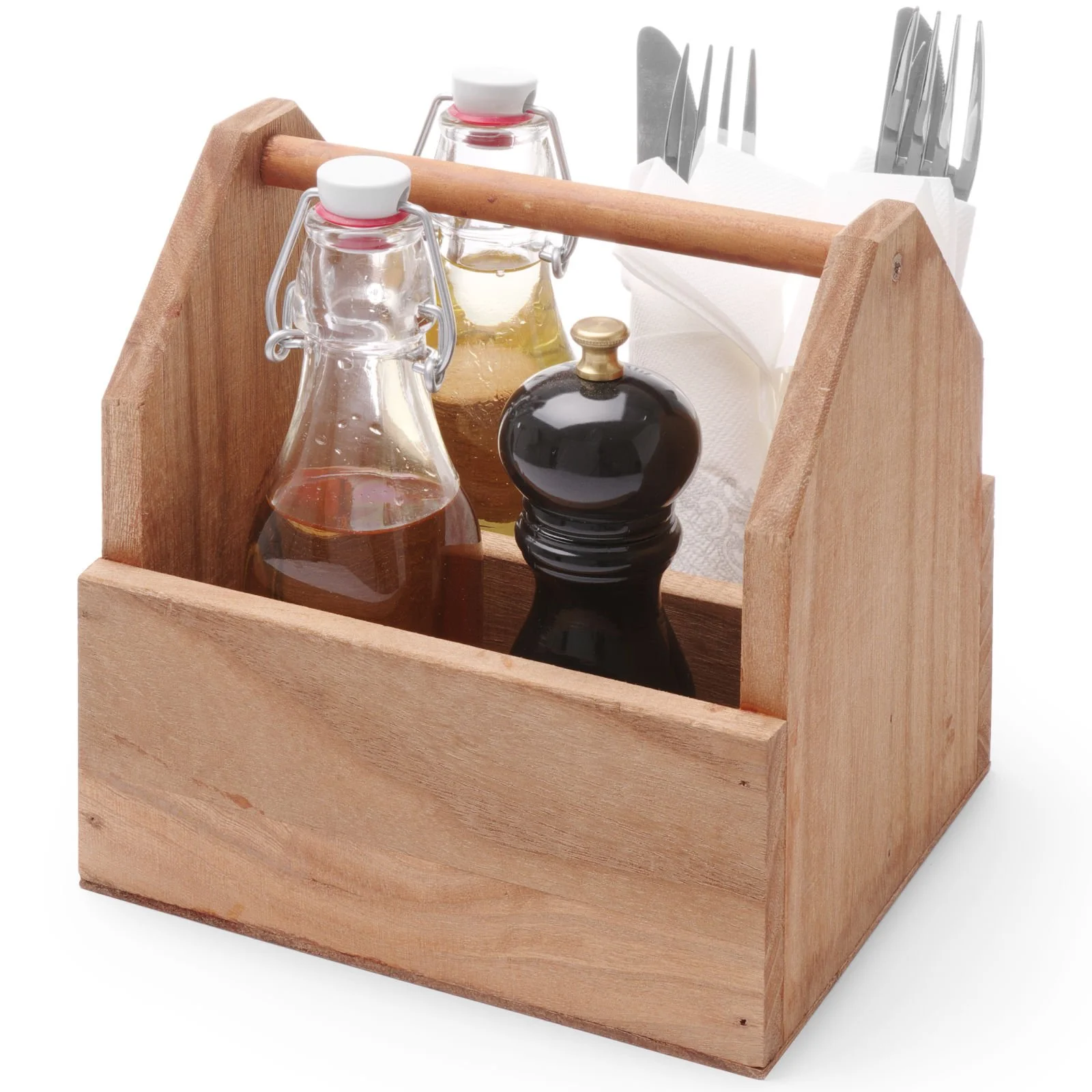 Organizer pojemnik stołowy na przyprawy sztućce drewniany z uchwytem - Hendi 664315