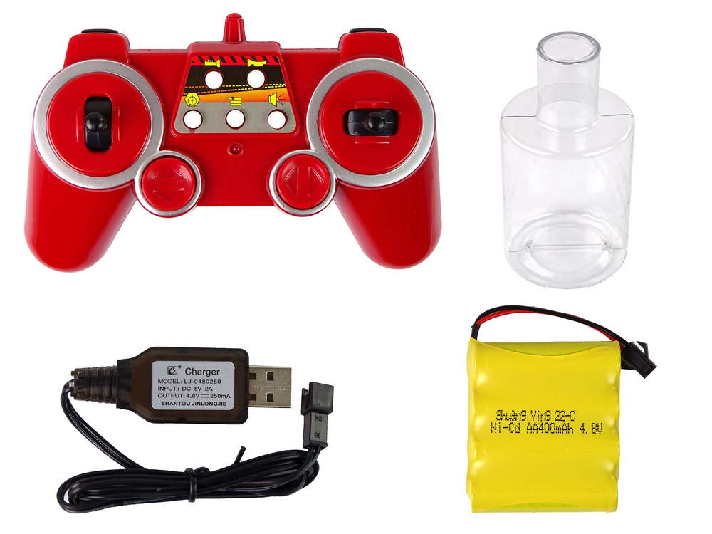 Wóz strażacki zasilana jest baterią 4,8V 400 mAh, w zestawie. Do pilota należy użyć 2 baterii "AA" 1,5 V (brak w zestawie). Zabawka przeznaczona jest dla dzieci powyżej 6 roku życia. Zestaw posiada certyfikat CE i jest zgodny z normą EN 71. Zapakowany jest w kartonik z przezroczystą witrynką, dzięki czemu nadaje się idealnie na prezent.