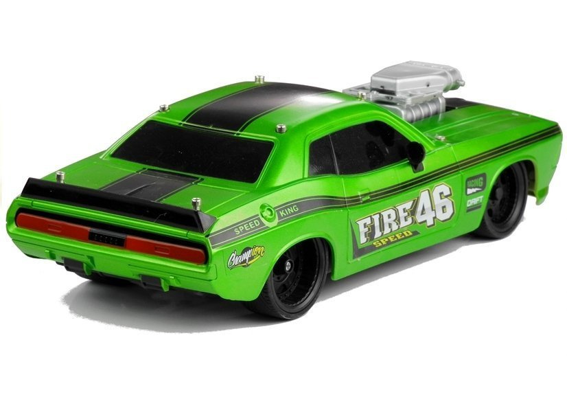 Zdalnie sterowany samochód w połyskującym, zielonym kolorze z czarnymi detalami wzorowany jest na klasycznym Dodge Challengerze. Model ten został zaprojektowany i stworzony w skali 1:16, co sprawia, że zachowano jego charakterystyczne elementy, dzięki czemu pojazd wygląda jak jego pełnowymiarowy odpowiednik. Rewelacyjnie podrasowane auto sportowe rodem z amerykańskich dróg z dużą pewnością spełni marzenie każdego chłopca, który jest pasjonatem motoryzacji. Przyjemna zabawa z wykorzystaniem zdalnie sterowanego pojazdu R/C wpłynie na prawidłowy rozwój dziecka — wzmocni jego koncentrację, a także rozwinie logiczne myślenie i szeroko pojęte zdolności manualne, czy spryt i zwinność.