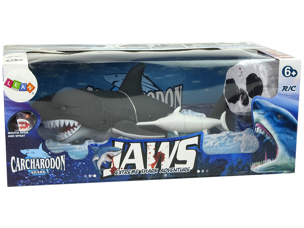 Zabawka wykonana jest najwyższej jakości plastiku. Każdy detal, charakterystyczne białe zęby, ostra płetwa na grzbiecie, długi ogon budzą grozę. Super zaletą jest zdalne sterowanie na podczerwień. Za pomocą pilota można nim sterować. Podczas zabawy porusza ogonem i całą talią, świecące oczy i sposób poruszania przypomina prawdziwego rekina. Największą niespodzianką jest funkcja spryskiwacza wodą. Na grzbiecie znajduje się otwór, do którego należy wlać wodę, załączoną pipetą w kształcie miecznika, po naciśnięciu przycisku na pilocie, rekin zacznie poruszać głową i używać spryskiwacza.
