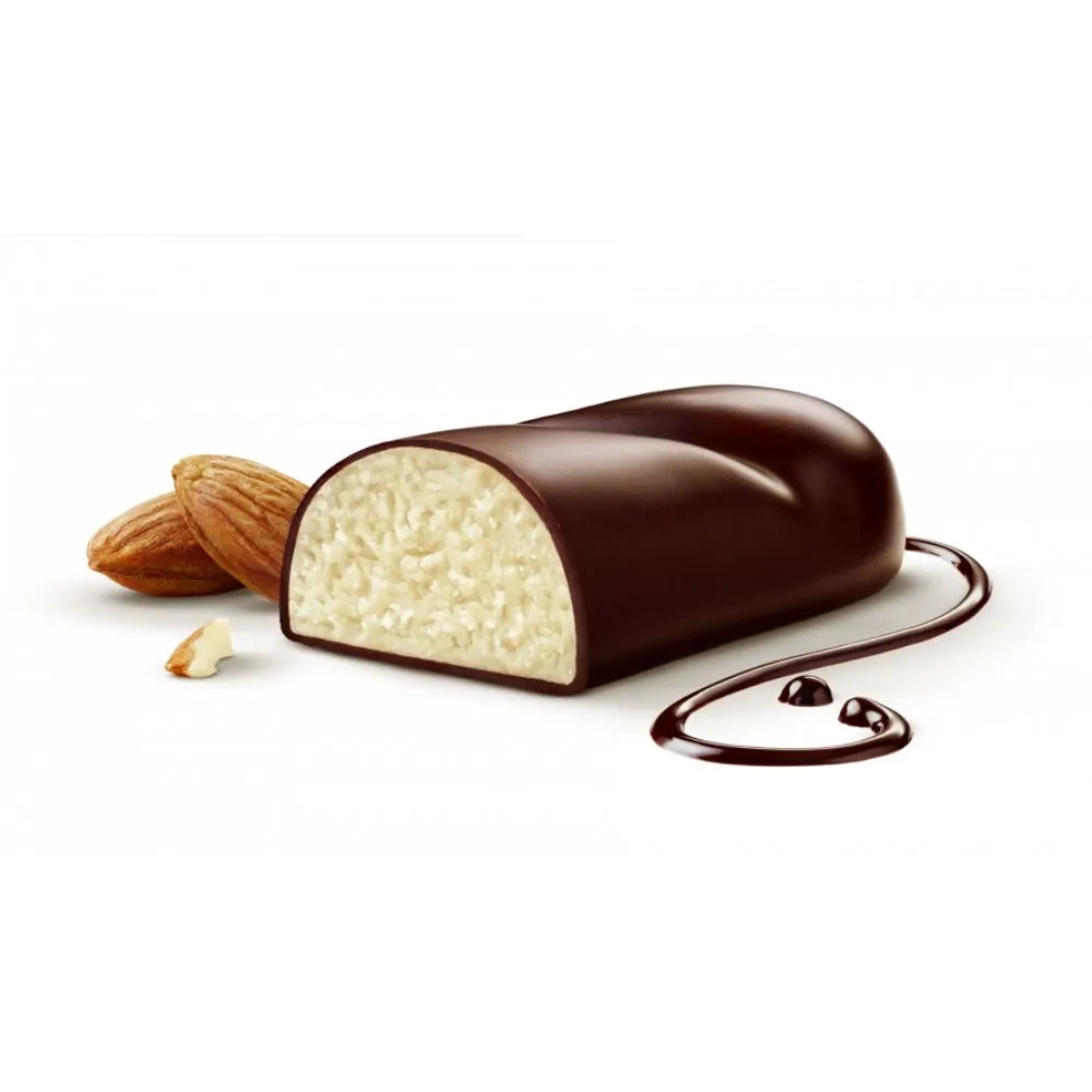 Skład: Cukier, MIGDAŁY (21%), syrop cukru inwertowanego, miazga kakaowa, syrop glukozowy, tłuszcz kakaowy, emulgator LECYTYNA SOJOWA E 322, substancja utrzymująca wilgoć Inwertaza E 1103, PEŁNE MLEKO W PROSZKU; może zawierać inne orzechy.