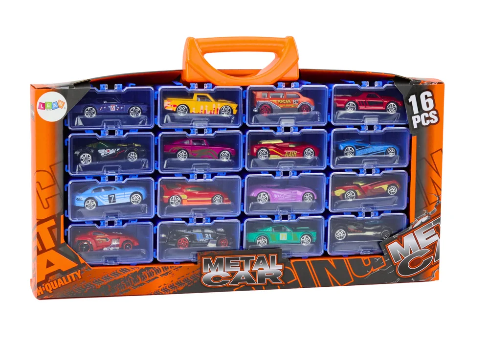 Wszystkie autka są starannie zapakowane w praktyczną walizkę, która jest nie tylko estetyczna, ale i funkcjonalna. Walizka wyposażona jest w solidny uchwyt, dzięki czemu dziecko może łatwo przenosić swoje ulubione zabawki wszędzie tam, gdzie chce się bawić. Wnętrze walizki zawiera przegrody, które gwarantują, że każde autko ma swoje własne miejsce. Przegrody są zamykane, co zapobiega przemieszczaniu się autek podczas transportu.