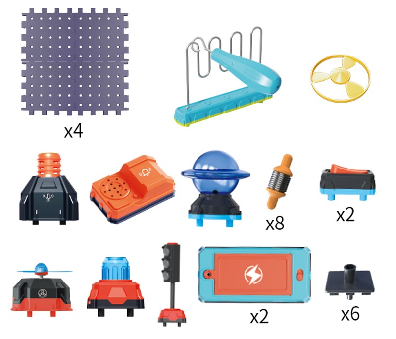 Zestaw przenosi naukę o obwodach elektrycznych z nudnej wiedzy do trójwymiarowego świata nieskończonych przygód. Gdy dziecko wszystko prawidłowo połączy będzie miało możliwość uruchomić różne elementy zestawu.