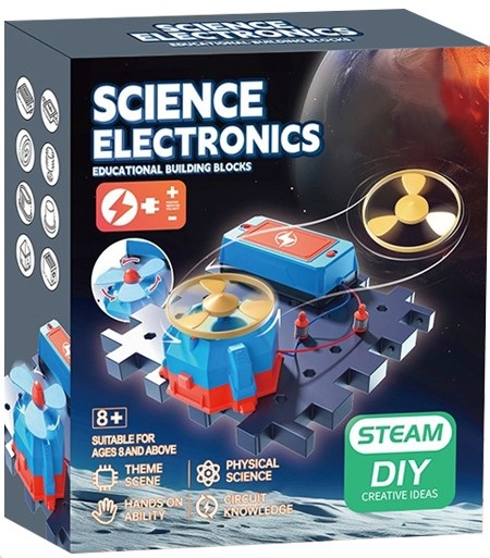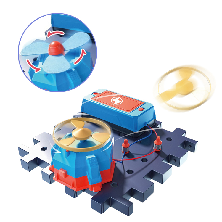 Zestaw przenosi naukę o obwodach elektrycznych z nudnej wiedzy do trójwymiarowego świata nieskończonych przygód. Gdy dziecko wszystko prawidłowo połączy będzie miało możliwość uruchomić wiatraczek lub frisbee.