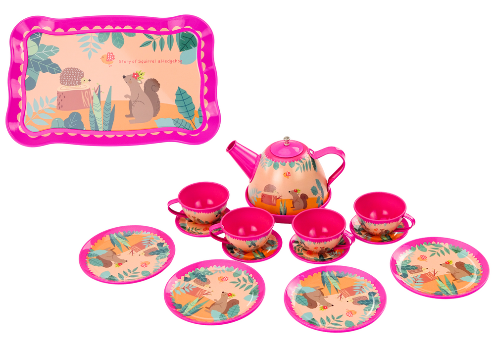 Taca jest idealna do serwowania napojów i deserów, a czajniczek pozwala na realistyczne zabawy w nalewanie herbaty czy kawy. Filiżanki i podstawki, również ozdobione motywami leśnych zwierzątek, sprawiają, że zabawa staje się jeszcze bardziej realistyczna i przyjemna. Duże talerzyki deserowe doskonale nadają się do podawania ulubionych słodkości.