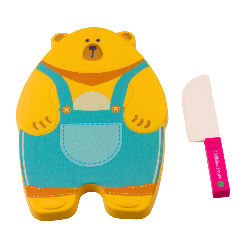 W zestawie znajduje się deska do krojenia w kształcie misia oraz bezpieczny nożyk, który nie posiada ostrych krawędzi. To idealna propozycja zabawy dla dzieci, która rozwija wyobraźnię, zdolności manualne, koordynację ruchową oraz uczy podstaw zdrowego odżywiania.