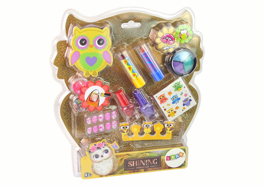Szminki dodadzą uroku ustom, a pilniczek w kształcie sowy sprawi, że pielęgnacja paznokci stanie się przyjemnością. Ozdobne naklejki z motywem sowy i różowe tipsy dodadzą stylu i urozmaicą tworzenie stylizacji. Dwa brokatowe lakiery do paznokci (czerwony i fioletowy) umożliwią tworzenie efektownych zdobień.