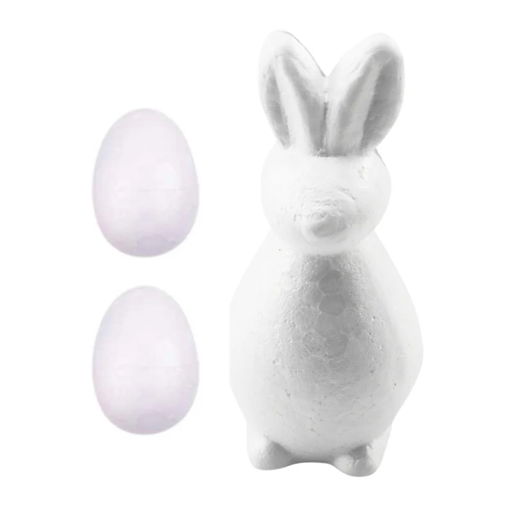 W zestawie znajduje się styropianowy zając, dwa styropianowe jajka – większe i mniejsze , a także cztery farby w intensywnych kolorach oraz pędzelek, który pozwala na dokładne i estetyczne malowanie. Figurki wykonane są z lekkiego i trwałego styropianu, dzięki czemu są łatwe do ozdabiania oraz odporne na przypadkowe uszkodzenia. Po pomalowaniu można je wykorzystać jako ozdobę wielkanocną na stół, stroik, koszyczek lub dekorację wnętrza.