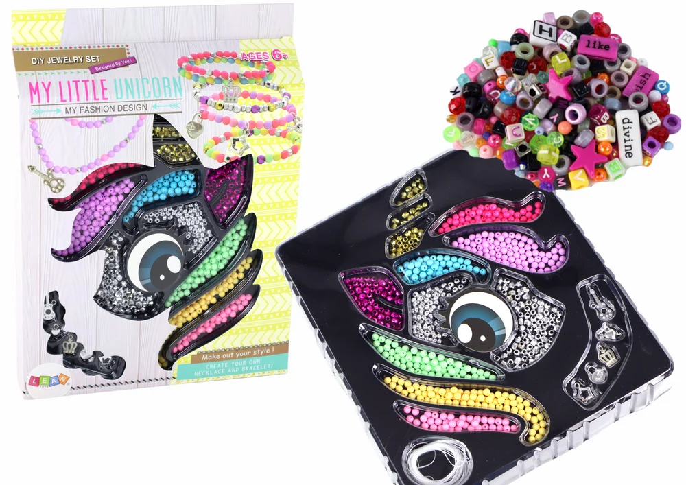 Oprócz tworzenia pięknych akcesoriów, zestaw ten rozwija zdolności manualne, kreatywność i wyobraźnię. Wymiary opakowania to 33,5 cm x 24,5 cm x 4 cm, a jego motyw z jednorożcem dodaje mu wyjątkowego uroku. Pozwól swojej kreatywności rozkwitać i stwórz unikatowe dzieła sztuki biżuteryjnej z tym urokliwym zestawem koralików.
