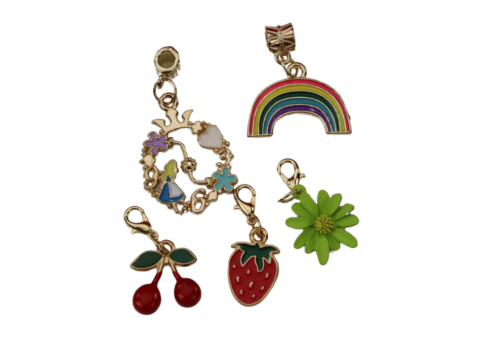 Na pierwszej półce znajdują się kolorowe zawieszki w kształcie motylków, kwiatuszków i gwiazdek, które zachęcają do kreatywnego kombinowania i tworzenia unikalnych kompozycji. Na drugiej stronie znajdziesz bogaty wybór kolorowych koralików z pięknymi wzorami oraz duże zawieszki w kształcie kwiatuszków i kokardek, które dodadzą uroku każdej biżuterii.