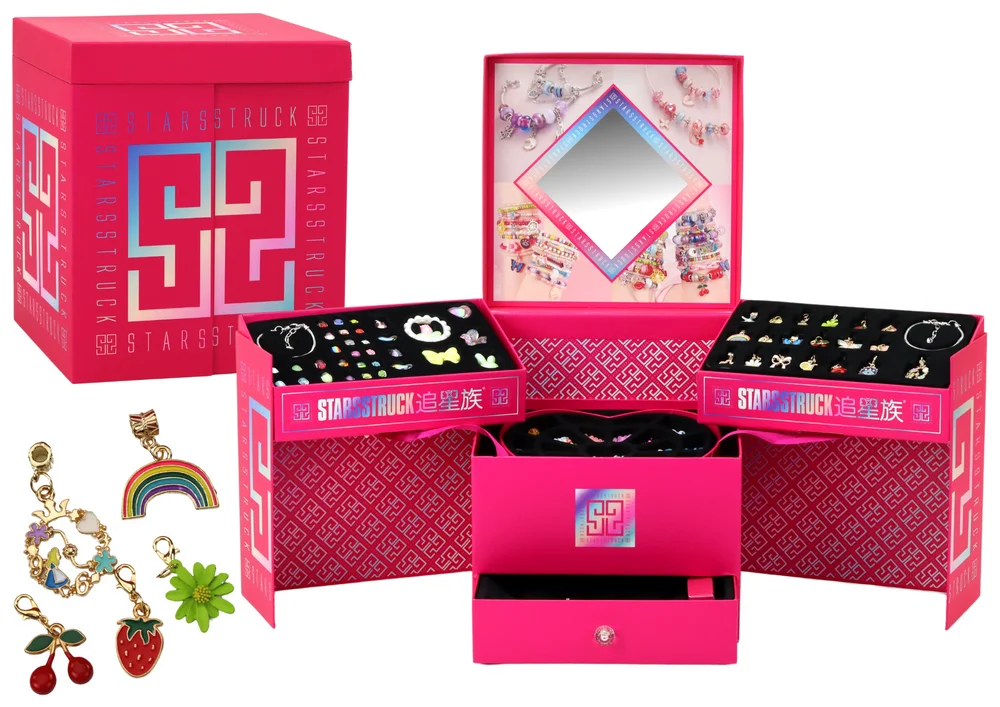 Niezwykły zestaw koralików, który przeniesie Twoje dziecko w świat niekończącej się zabawy i kreatywności. Ten wyjątkowy zestaw, zapakowany w duże, kwadratowe, różowe pudełko o imponujących wymiarach 26 cm x 23 cm x 23 cm, zachwyci każdego małego artystę. Gdy otworzysz pudełko, ściany pudełka rozsuwają się, odsłaniając trzy duże półki, z których każda wypełniona jest kolorowymi skarbami do tworzenia biżuterii.