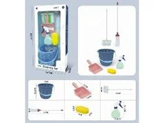 Każdy element został wykonany z dbałością o szczegóły i wygląda, jak prawdziwy. Cały zestaw zawiera wiaderko, mopa, szufelkę, spryskiwacz i gąbka.