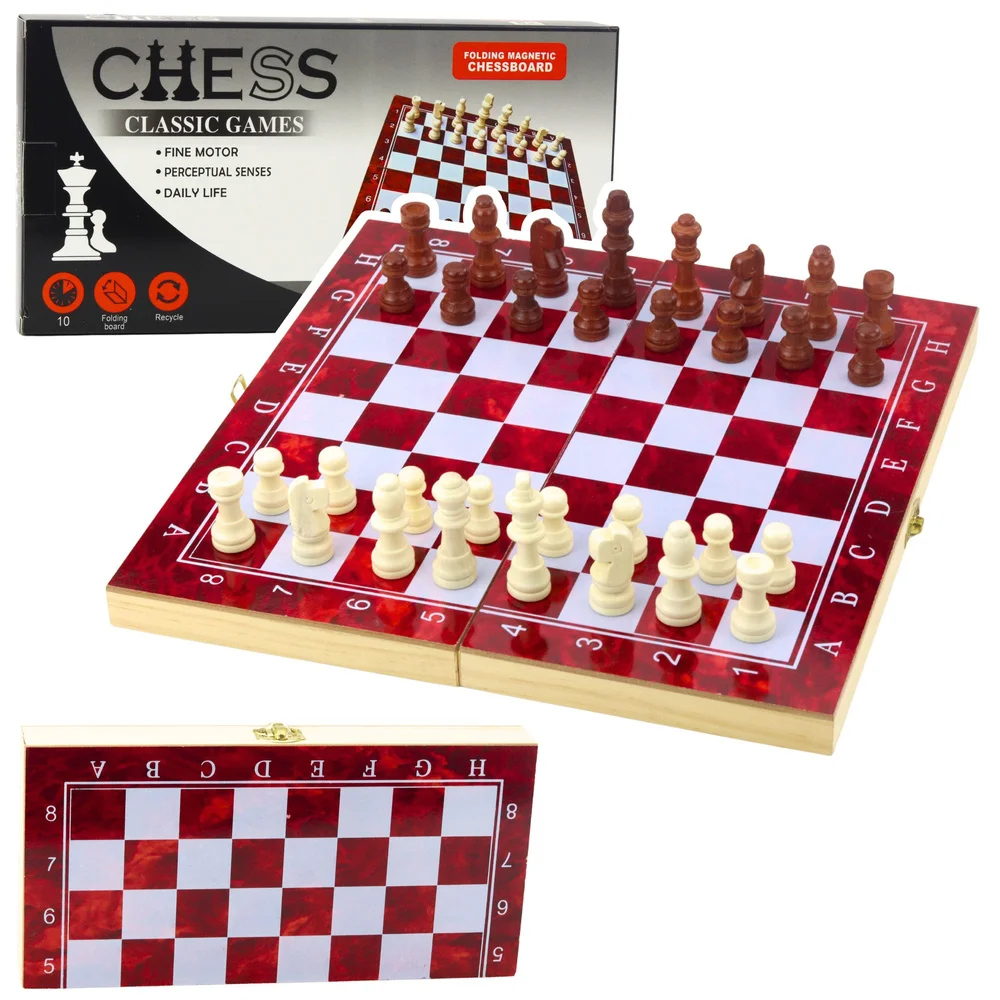 DREWNIANA GRA SZACHY WARCABY TRYKTRAK SKŁADANA 3W1