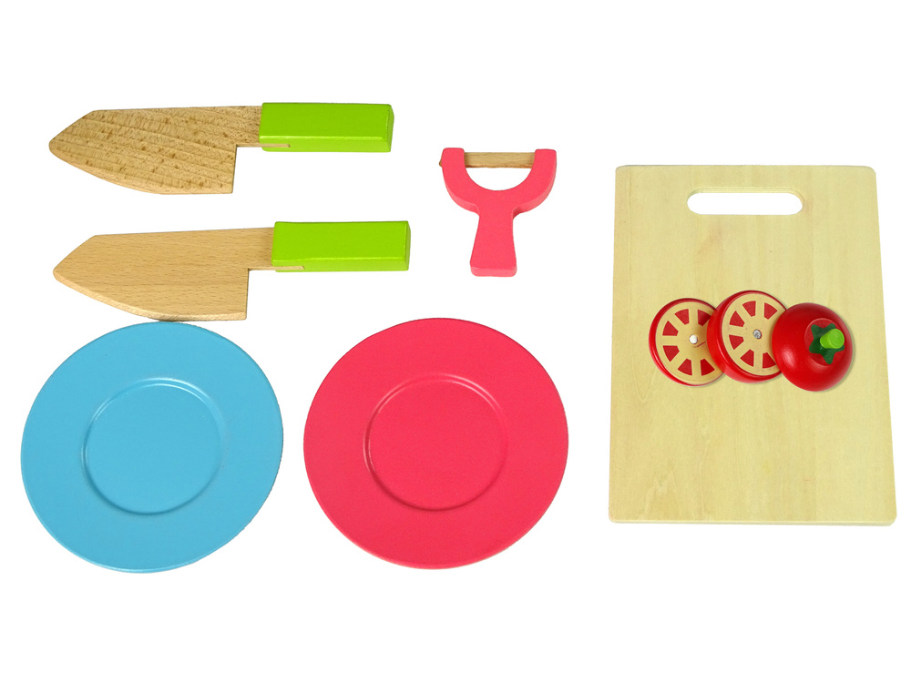 Samodzielne przygotowanie potraw i krojenie artykułów spożywczych to od tej chwili czynność, którą mogą wykonywać nasi najmłodsi. Pomoc w kuchni to jedno z ulubionych zajęć małych kucharzy. Duży, kolorowy zestaw zachwyci każdą małą pomoc kuchenną, wspólnie będziecie mogli przygotowywać posiłki. Elementy pomogą rozwijać umysł dziecka, a krojenie elastyczność i funkcje ręki oraz poznanie kształtów.