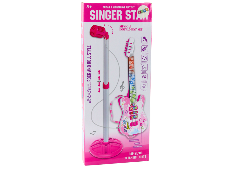 Zestaw Gitara Elektryczna Statyw z Mikrofonem Na Baterie Różowa