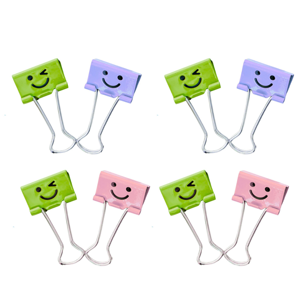 Dzięki trwałej stalowej konstrukcji i sprężystemu zaciskowi, klipsy nadają się do wielokrotnego użytku i nie niszczą papieru. Różne kolory (zielony, różowy, fioletowy) oraz wyraziste buźki ułatwiają identyfikację dokumentów, pomagają w segregowaniu materiałów i stanowią ciekawy element wyposażenia każdego biurka.