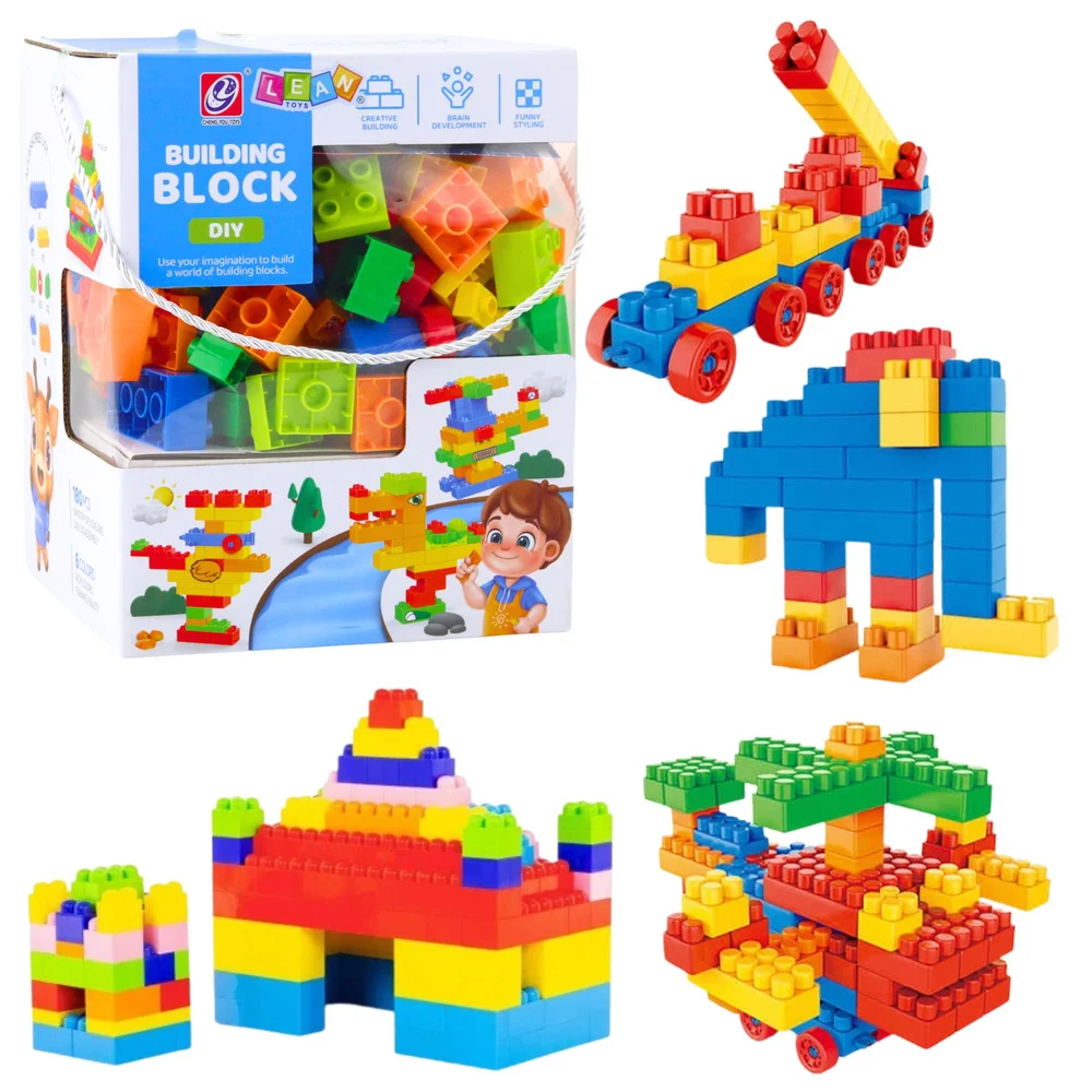 Zestaw klocków konstrukcyjnych 180 elementów to idealna zabawka dla dzieci, które uwielbiają tworzyć i rozwijać swoją kreatywność. Dzięki dużej ilości różnorodnych elementów w intensywnych kolorach – czerwonym, żółtym, niebieskim i zielonym – możliwe jest budowanie przeróżnych konstrukcji: domków, pojazdów, zwierząt czy fantazyjnych budowli.