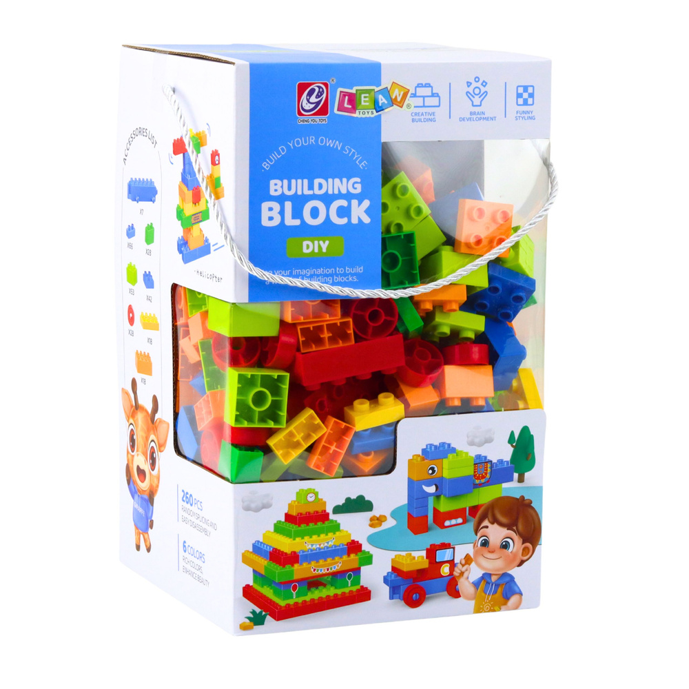 Zestaw klocków konstrukcyjnych to idealna propozycja dla dzieci, które uwielbiają tworzyć własne budowle, pojazdy i fantazyjne konstrukcje. W komplecie znajduje się aż 260 elementów w intensywnych, podstawowych kolorach: czerwonym, żółtym, niebieskim i zielonym. Dzięki dużej ilości elementów możliwości tworzenia są praktycznie nieograniczone – od prostych domków i zwierzątek, po pojazdy na kółkach i bardziej skomplikowane projekty.