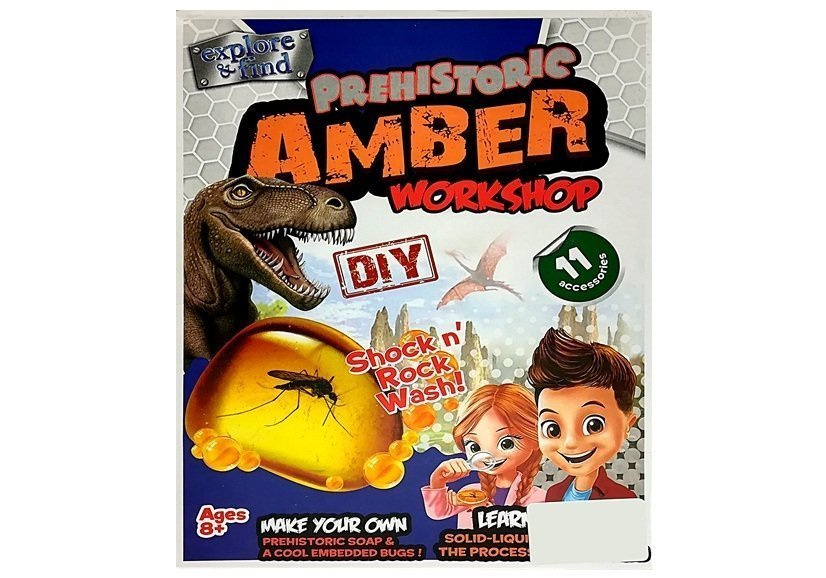 Każde dziecko uwielbiające kreatywną zabawę i tworzenie własnoręcznych dzieł zachwyci się nowym zestawem do tworzenia własnych prehistorycznych bursztynów. Mały poszukiwacz przygód będzie mógł się pochwalić kamieniem, w którym zamknięty został owad z czasów, gdy po świecie chodziły dinozaury! Dzięki temu zestawowi dziecko może zmienić swój pokój w mini laboratorium. Niesamowita zabawa gwarantowana. Zestaw idealny dla dzieci ciekawych świata, lubiących prace plastyczne i z ogromną wyobraźnią!