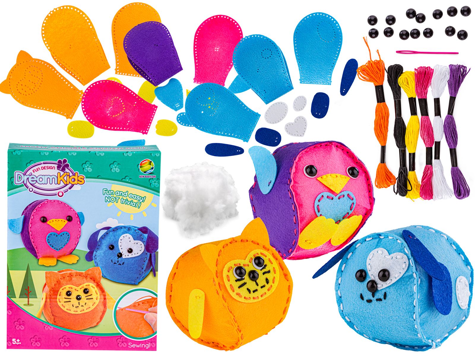 Bezpieczna zabawaMaskotki DIY wykonane zostały z przyjemnych materiałów. Poszczególne elementy posiadają już wycięte otwory na igłę, dzięki czemu zszywanie to czysta przyjemność. Plastikowa, duża igiełka nie jest ostro zakończona, dzięki czemu jest przede wszystkim bezpieczna ale i wygodna w użytkowaniu dla małych rączek. | ![]() |