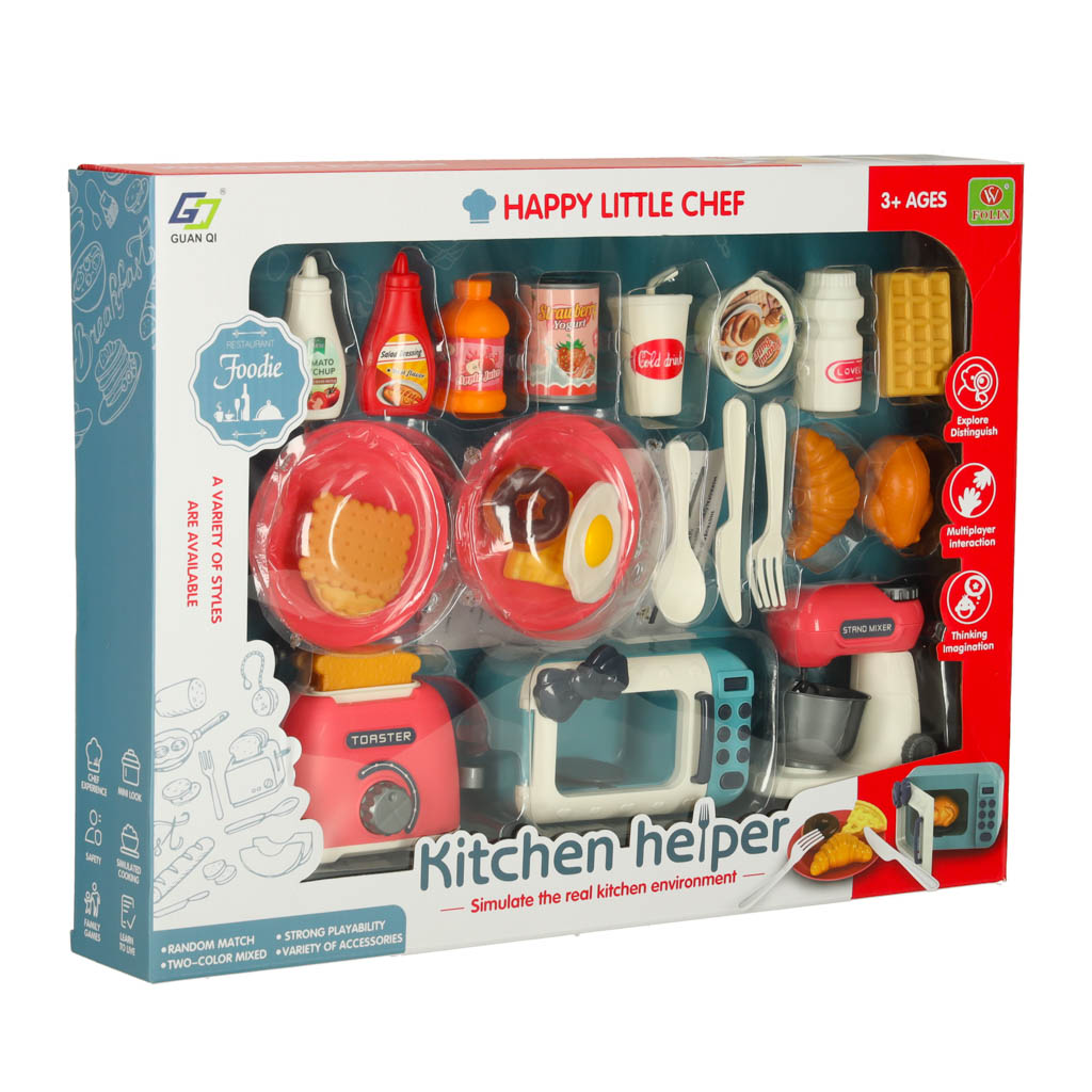 Wspólne gotowanie to świetna zabawa! Dzięki temu zestawowi, Twoje dziecko może odkrywać tajniki kuchni w bezpieczny sposób. W skład zestawu wchodzą mikrofalówka, toster, mikser oraz różne akcesoria, które zapewnią mnóstwo radości i kreatywnej zabawy.