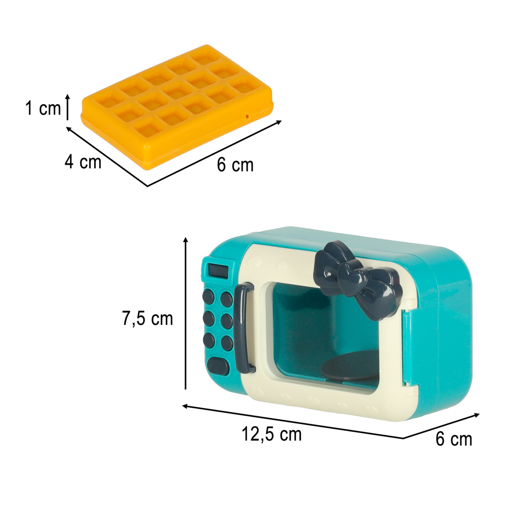 Wymiary mikrofalówki to 12,5 cm x 7,5 cm x 6 cm, a opakowanie ma rozmiary 47 cm x 7,5 cm x 34,5 cm. Waga zestawu wynosi 0,72 kg. Dzięki temu zestawowi, Twoje dziecko stworzy swoją własną kuchnię i rozwinie umiejętności nie tylko kulinarne, ale i manualne.
