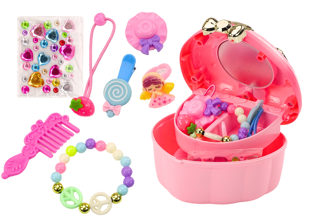Zestaw dla dziewczynek kuferek w kształcie serduszka to piękna i funkcjonalna szkatułka, która z pewnością zachwyci każdą małą księżniczkę.