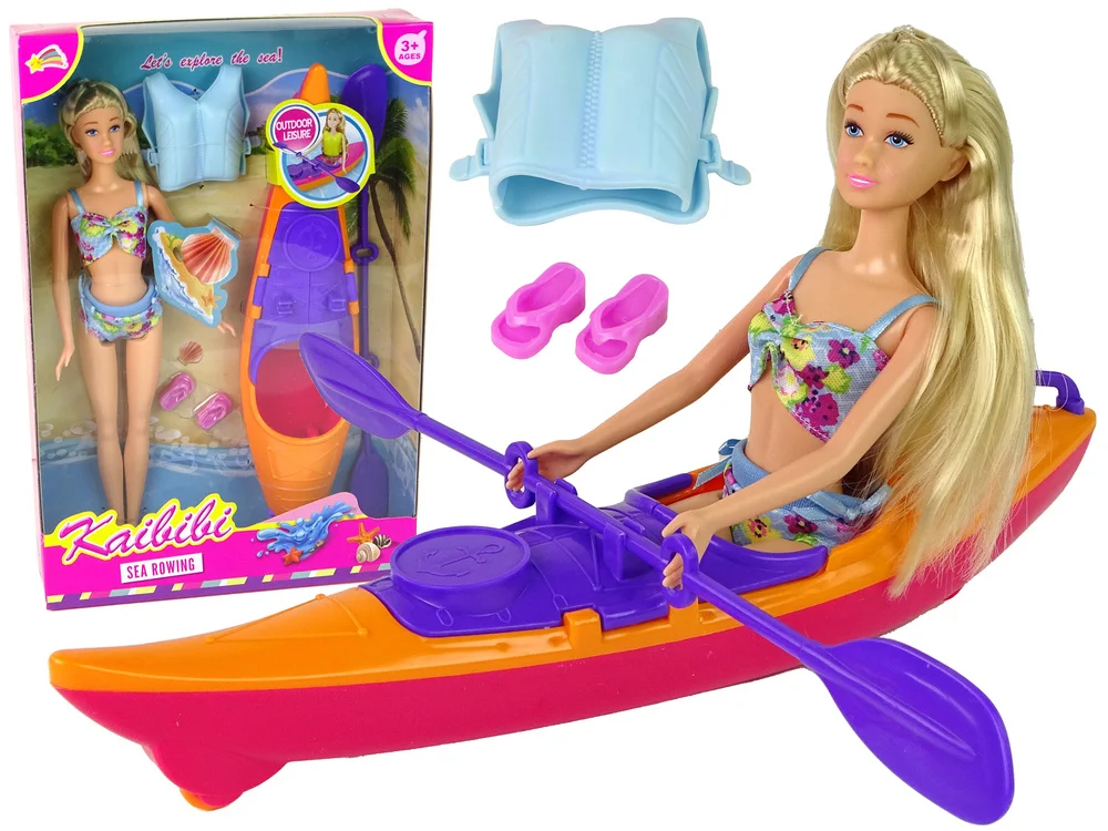 Zestaw w całości wykonany jest z trwałego plastiku, co gwarantuje nie tylko bezpieczeństwo, ale również długotrwałość. Wymiary lalki wynoszą: 29 cm x 29 cm x 7 cm, a kajaka: 30 cm x 4 cm x 7 cm, co czyni go idealnym towarzyszem zarówno podczas zabawy w domu, jak i na zewnątrz.