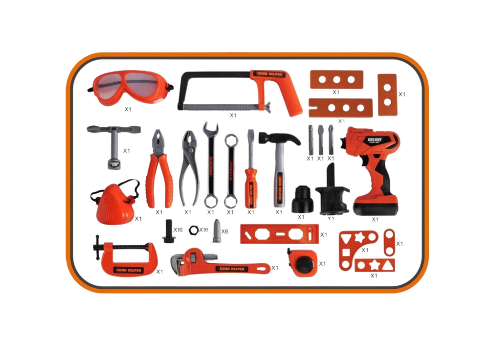 Narzędzia są świetnie wykonane i dopracowane w całości wykonane z plastiku. Dzięki skrzynce, w którą są spakowane zawsze po skończonej pracy będzie można schować je na swoim miejscu oraz bez problemu przenieść z miejsca na miejsce. Wiertarka wydaje dźwięki jak prawdziwa i do tego idealnie jest wyprofilowana, dzięki czemu mieści się do każdych małych rączek. Maluch odkryje tajniki napraw i stworzy własne domowe konstrukcje za pomocą dołączonych narzędzi!