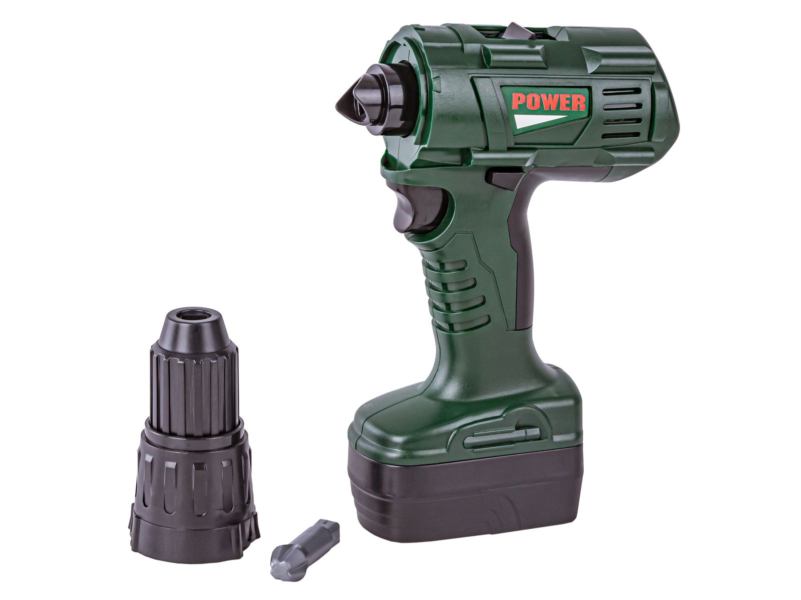 Narzędzia jak prawdziweNarzędzia wzbogacone zostały o dodatkowe efekty. Wkrętarka - posiada lewe i prawe obroty jak w prawdziwym sprzęcie dla dorosłych. Posiada również wyjmowany akumulator (zasilany na baterie AA). | ![]() |