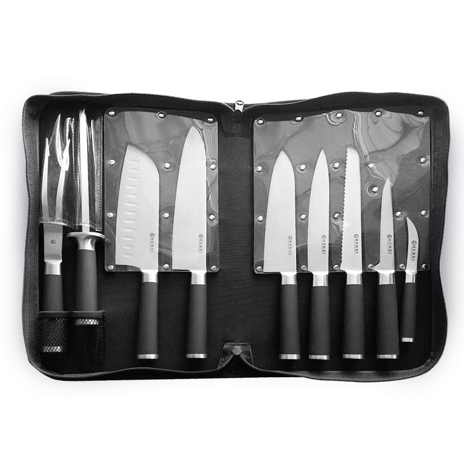 Każdy nóż ma ergonomiczny uchwyt ze stali nierdzewnej 410 z gumowaną powłoką, co zapewnia komfort i bezpieczeństwo podczas pracy. Zestaw jest zapakowany w eleganckie etui, które chroni noże przed uszkodzeniami.