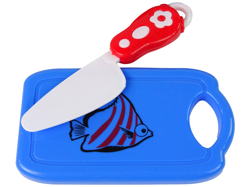 W zestawie znajdziesz także praktyczne dodatki, takie jak zielony talerzyk o średnicy 13 cm, niebieska deska do krojenia (13 cm x 8 cm), zielona łyżka (12 cm) oraz czerwono-biały widelec i nóż (13 cm). Wszystkie elementy są starannie zaprojektowane z myślą o bezpieczeństwie i edukacyjnej zabawie.