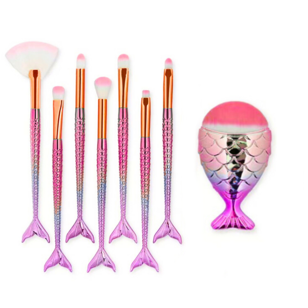 ZESTAW PĘDZELKÓW DO MAKIJAŻU SYRENI OGON FIOLETOWO-RÓŻOWE 8 SZT.