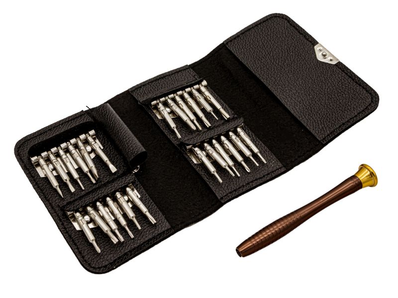 Praktyczny zestaw 24 końcówek wraz z profesjonalnie wyglądającym uchwytem. Całość została zamknięta w poręcznym etui. Jest to komplet, który możemy używać w serwisie lub też zabrać go ze sobą na lotnisko, w plener itd. Przyda się podczas serwisowania smartfonów, laptopów, zegarków itd.