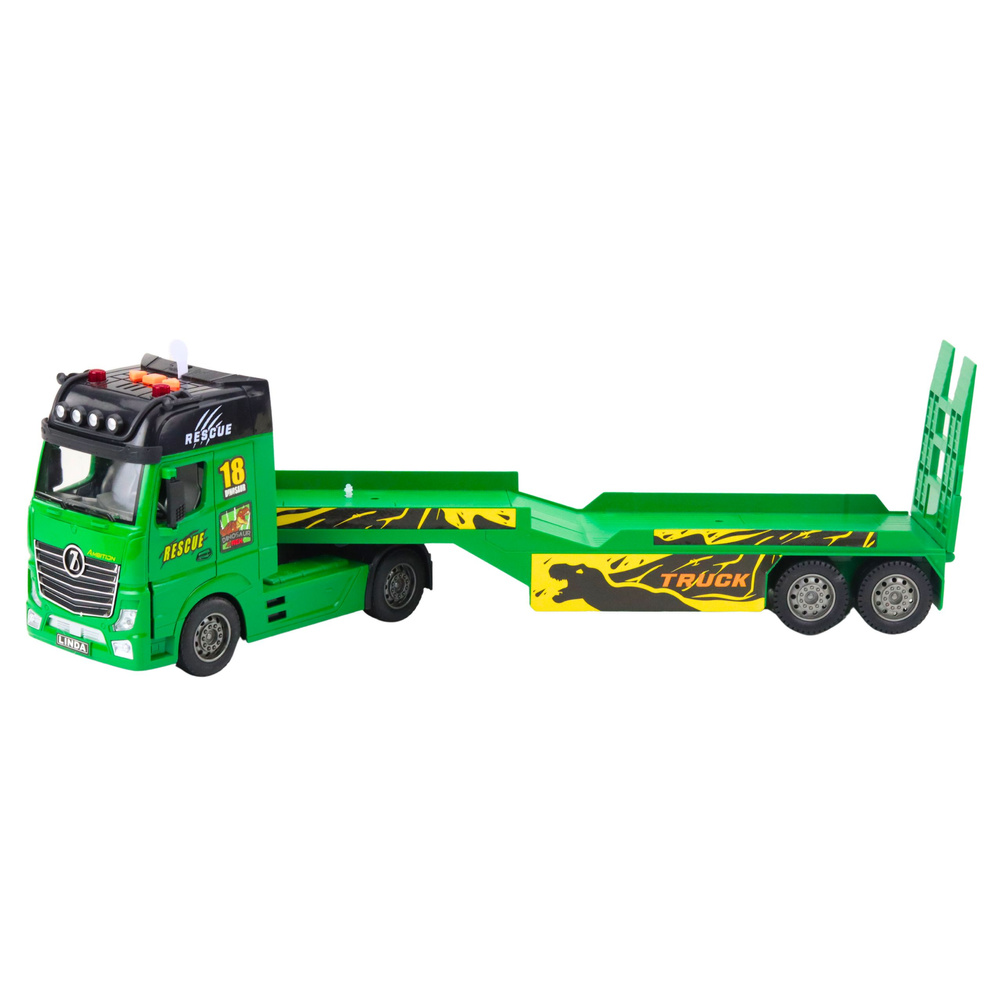 Zabawa staje się jeszcze ciekawsza dzięki interaktywnym funkcjom – przyciski umieszczone na kabinie ciężarówki aktywują realistyczne efekty świetlne i dźwiękowe, takie jak odgłosy silnika, cofania czy sygnału alarmowego. Helikopter wyposażono w obracające się śmigła oraz w pełni działający mechaniczny hak, którym można podnosić i przenosić klatkę z dinozaurem. Dzięki temu dzieci mogą tworzyć własne scenariusze ratunkowe i misje transportowe.