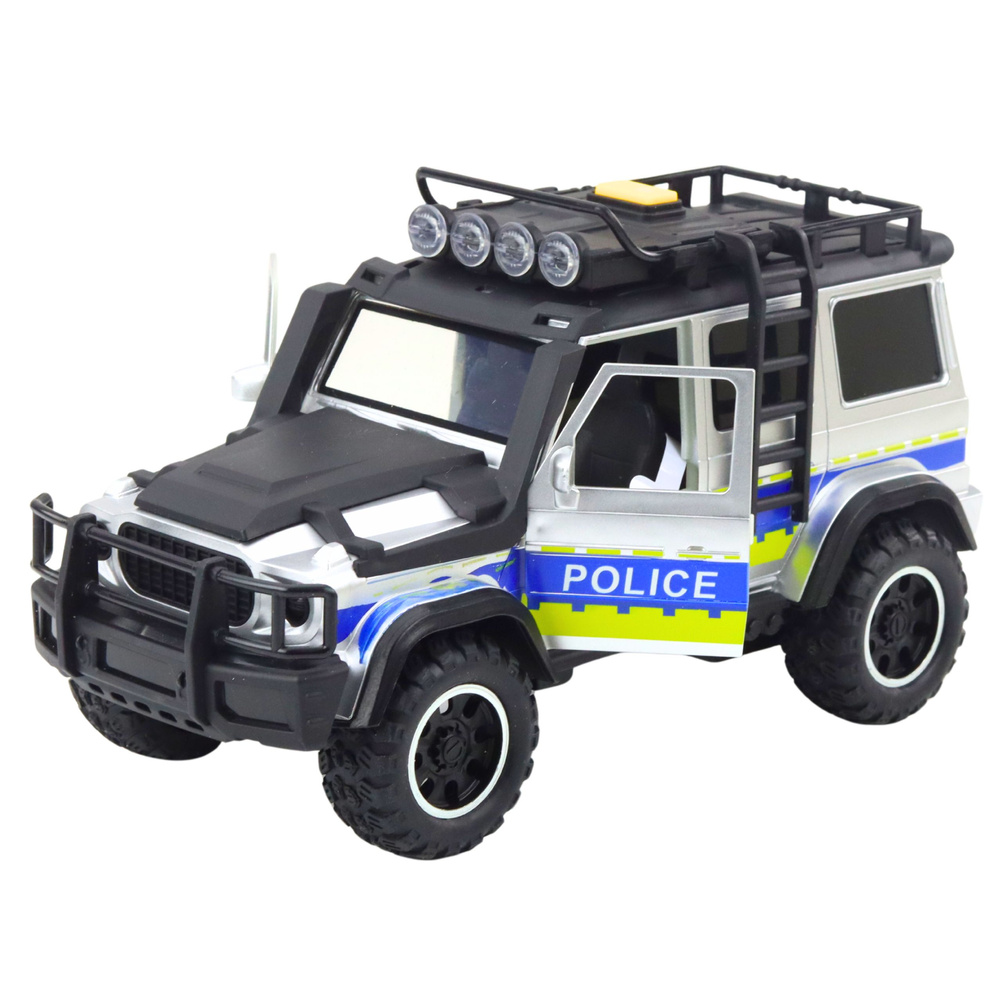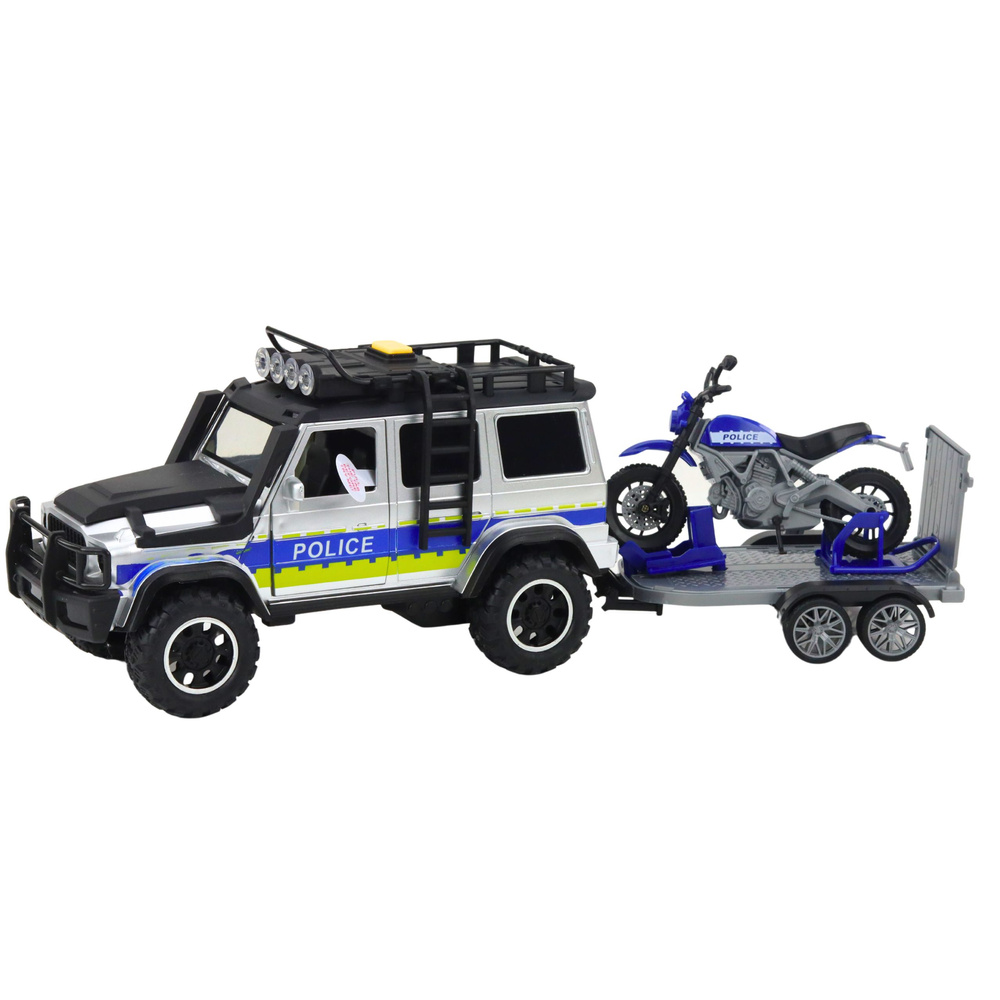 SAMOCHÓD POLICYJNY Z LAWETĄ I MOTOCYKLEM – EFEKTY ŚWIETLNE I DŹWIĘKOWE