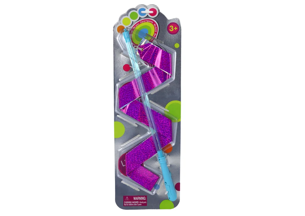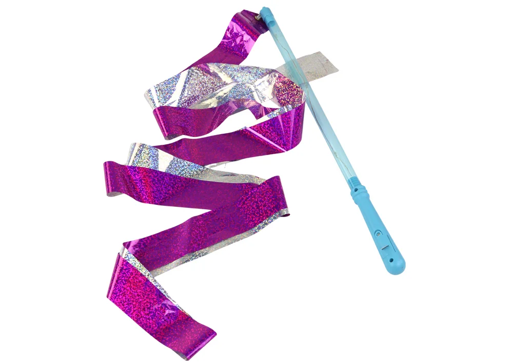 Ta błyszcząca różowa wstęga to nie tylko akcesorium sportowe, ale także instrument do kreowania magicznych chwil na parkiecie. Zamocowana na niebieskim uchwycie wstęga nie tylko prezentuje się efektownie, ale także ma dodatkową funkcję efektów świetlnych, dodając jeszcze więcej magii do występu.