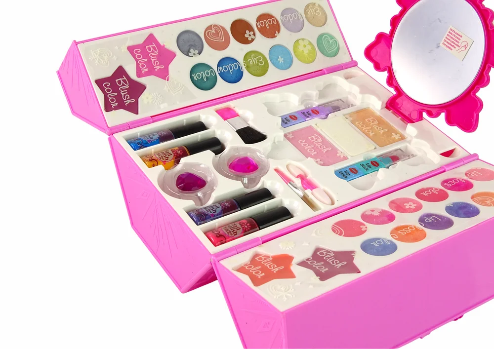 Każda dziewczynka chciałaby naśladować swoją mamę w makijażu codziennym lub wieczorowym. Dzięki temu zestawowi ma taką możliwość! Zestaw, który przedstawiamy, jest idealny dla małych modniś, które zaczynają swoją przygodę z makijażem, czy malowaniem paznokci. Ten zestaw zapewni dziecku zabawę, ale także rozwinie umiejętności artystyczne i wyobraźnie, na pewno umożliwi naukę nowych technik makijażu. Zestaw z łatwością pozwoli wcielić się dziewczynkom w rolę makijażystki.