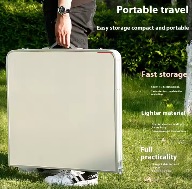 Składana konstrukcja stołu i krzeseł, która po złożeniu przyjmuje kompaktową formę poręcznej walizki z uchwytem, sprawia, że cały zestaw jest wyjątkowo łatwy do przechowywania i transportu. To szczególnie ważne podczas wyjazdów, kiedy każdy centymetr przestrzeni w bagażniku ma znaczenie.