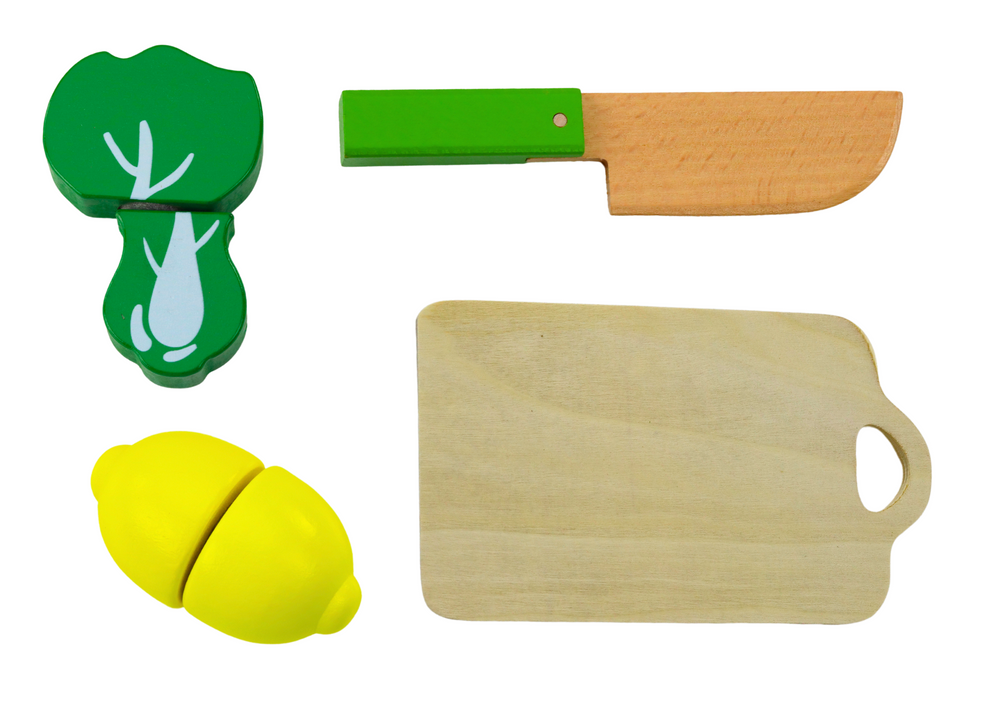 Zestaw zawiera także bezpieczny, drewniany nóż, który jest specjalnie zaprojektowany tak, aby był bezpieczny dla małych dzieci. Do zestawu dołączona jest również drewniana deska do krojenia, która dodaje realizmu i umożliwia dzieciom naśladowanie dorosłych podczas przygotowywania posiłków.