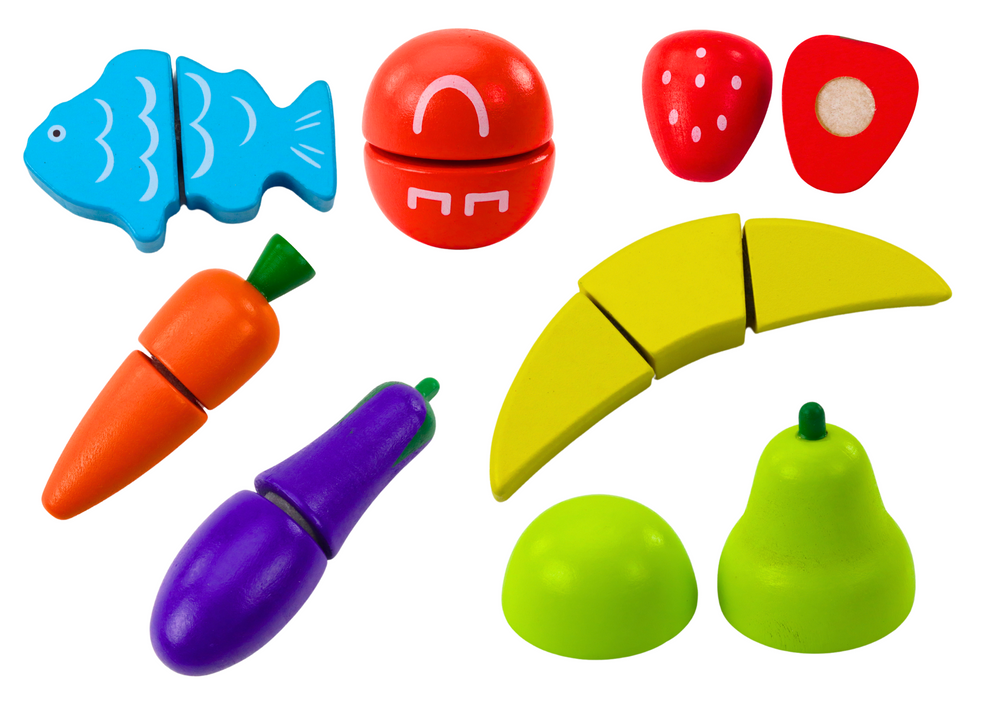 Unikalnym elementem tego zestawu jest sposób łączenia poszczególnych elementów – każdy owoc i warzywo jest połączony rzepami. Dzięki temu dzieci mogą łatwo "kroić" warzywa i owoce, a następnie je z powrotem łączyć, co nie tylko sprawia im frajdę, ale również pomaga rozwijać koordynację ręka-oko oraz zdolności motoryczne.
