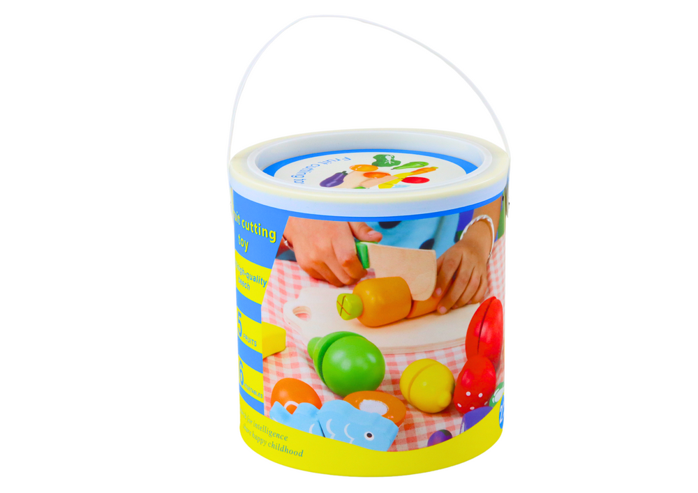 Zestaw Warzyw i Owoców Do Krojenia W Wiaderku Deska Nóż Drewniane