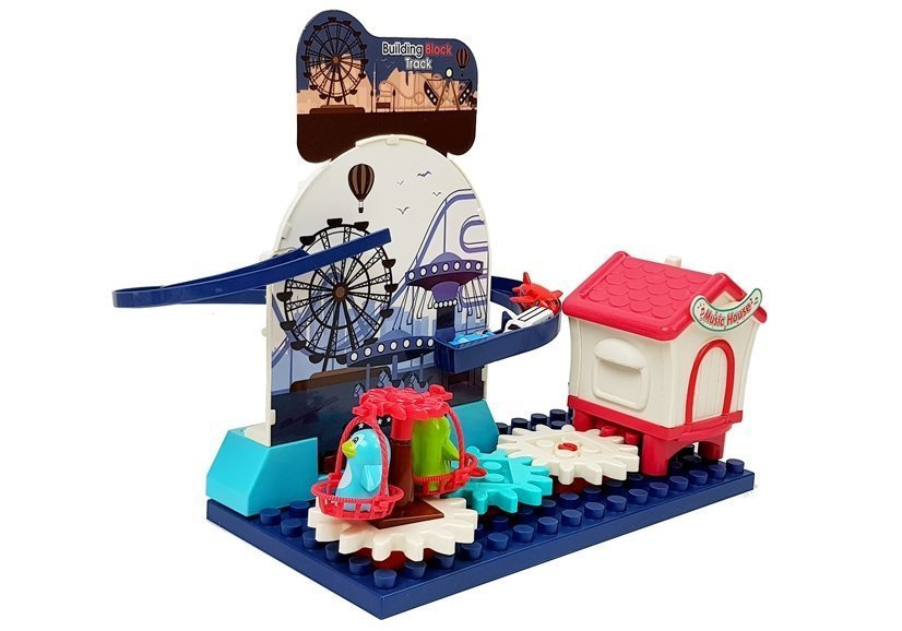 Pierwszą czynnością, jaką musi wykonać to złożenie całości konstrukcji " Domku i wesołego miasteczka". Należy dobrze złożyć całą budowle, ułatwi to instrukcja dołączona do zabawki. Kolejną czynnością będzie włączenie domku i podziwianie swojej pracy. Domek ma cudną kolorystykę biało- różową i napędza całą zabawkę. Po włączeniu koła zębate zaczynają się kręcić, wprawiając w ruch inne elementy. Dodatkowo domek wydaje przyjazną muzyczkę. Duże wesołe miasteczko. Umieszczając pingwiny w koszyczku, kręcą się na karuzeli. Inna z atrakcji jest wesołe miasteczko ze zjeżdżalnią dla pojazdów.