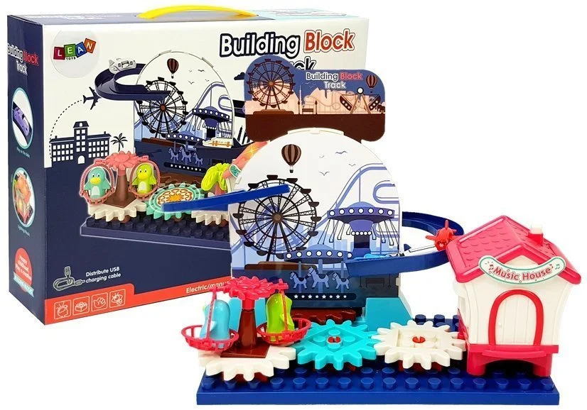 Zestaw z Klocków ze Zjeżdzalnią Samochodową Koła Zębate na Baterie