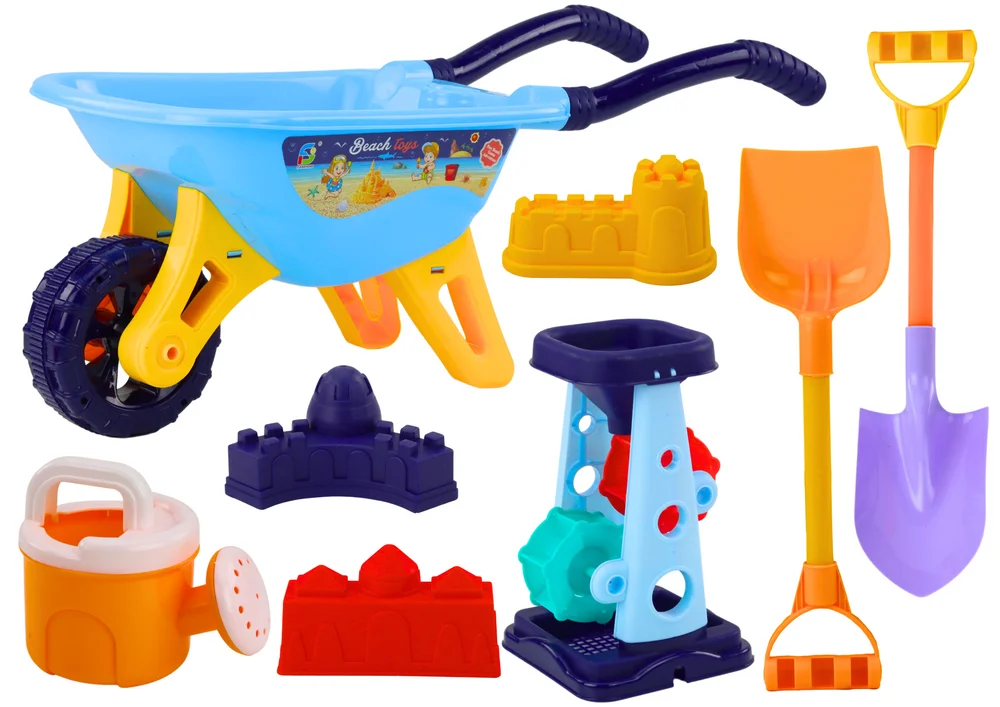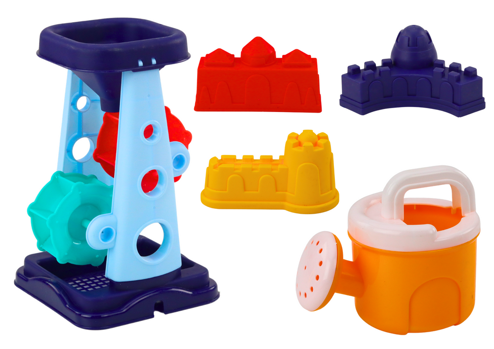 Głównym elementem zestawu jest toczek – duży, poręczny pojemnik na kółkach, który umożliwia łatwe przewożenie piasku, wody lub innych elementów niezbędnych do budowy imponujących piaskowych konstrukcji. Toczek dodaje zabawie element ruchu i pomaga rozwijać zdolności motoryczne dziecka. Kolejną atrakcją jest kolorowy młynek, który zapewnia efektowną zabawę z piaskiem i wodą – wsypując materiał od góry, dziecko obserwuje ruchome elementy wewnątrz młynka.