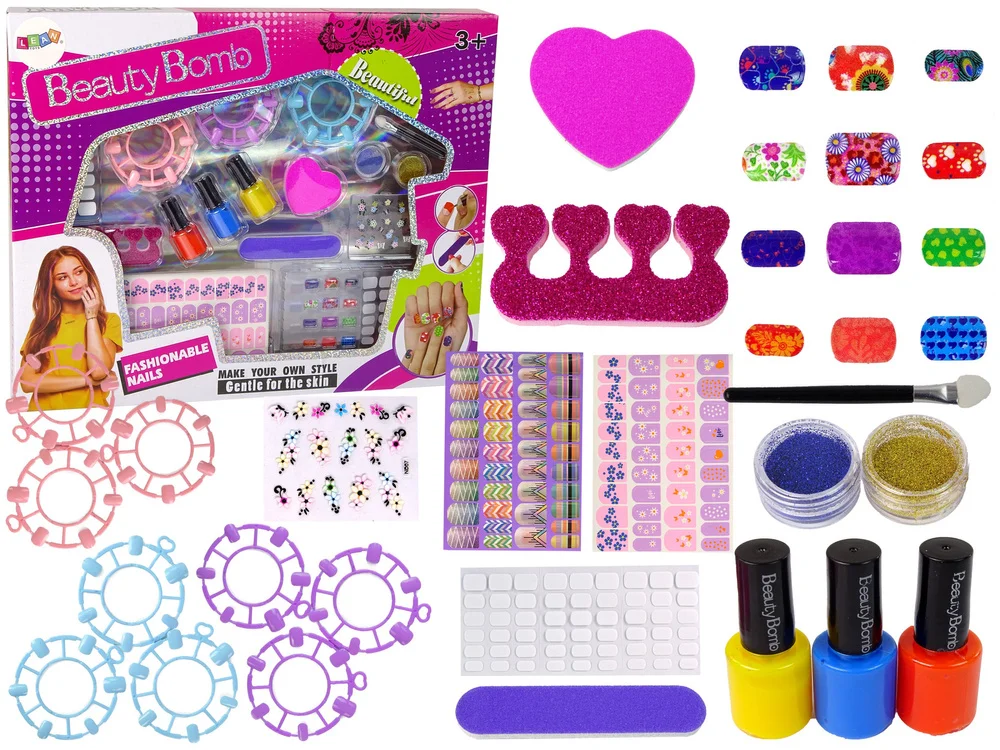 Zestaw Do Malowania Paznokci Lakiery Naklejki Wzorniki Brokaty