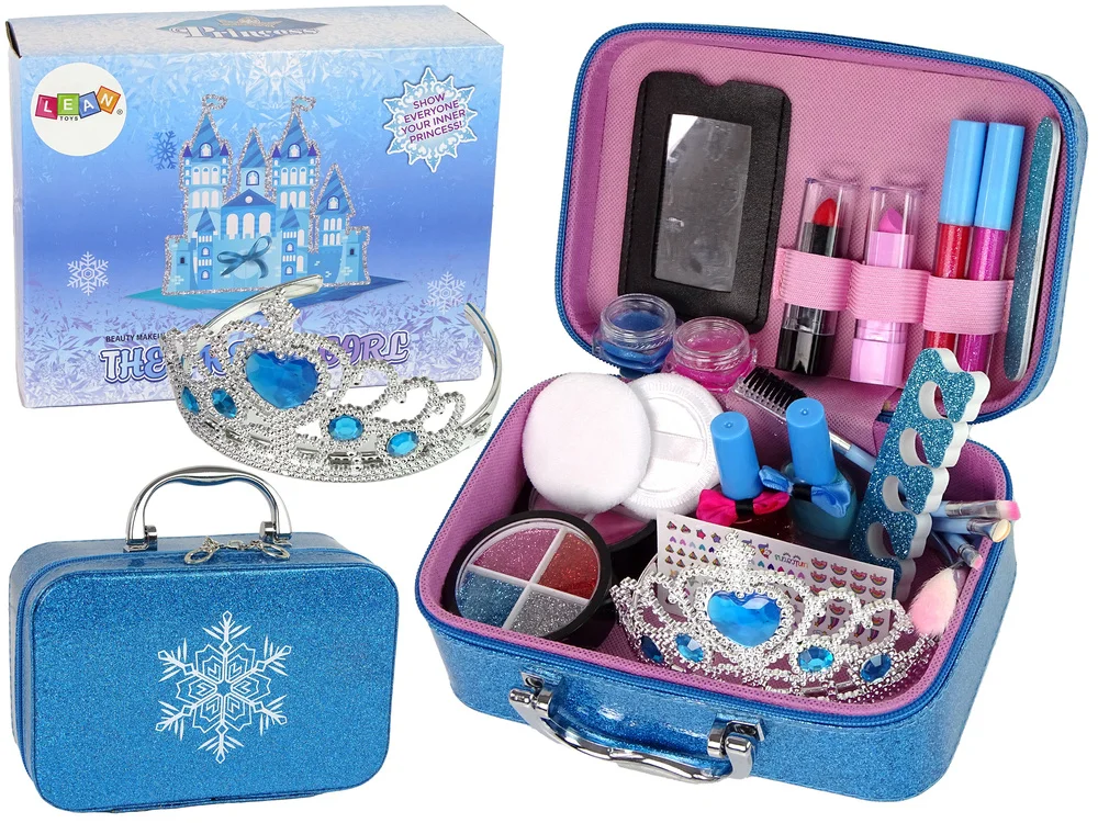 Zestaw Do Makijażu Robienie Paznokci Kuferek Niebieski Brokaty Błyszczyki