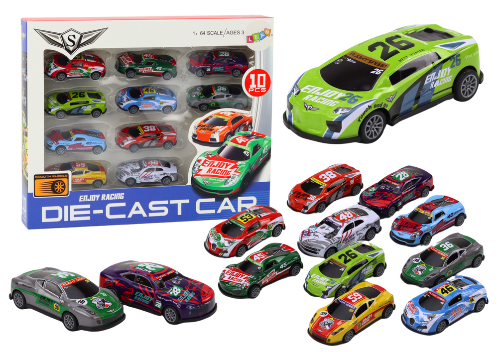 Zestaw Samochodzików Resoraki Autka Sportowe Wyścigowe 1:64 10 szt.
